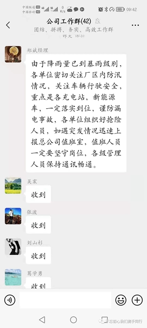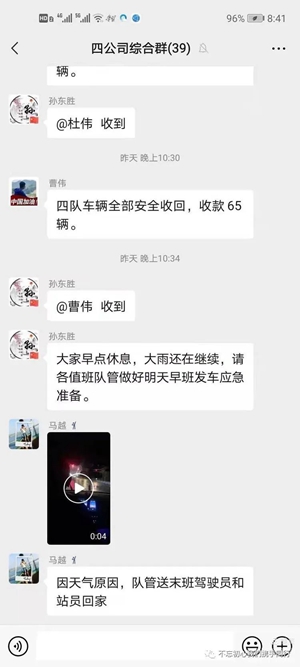 一是信息共享??偣就ㄟ^微信群、車內(nèi)監(jiān)控、GPS定位等手段,及時(shí)將線路運(yùn)行情況、危險(xiǎn)路段道路積水情況、場(chǎng)站排水情況等信息進(jìn)行共享聯(lián)動(dòng),以確保及時(shí)準(zhǔn)確下達(dá)工作指令。