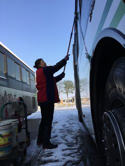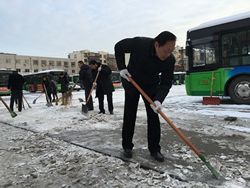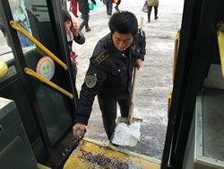 5點(diǎn),分公司、路隊(duì)兩級(jí)管理人員全部按照分工,到達(dá)指定線路、樞紐站,開始協(xié)助司機(jī)加水、熱車,做好發(fā)車前的準(zhǔn)備。6點(diǎn)半,總公司、分公司機(jī)關(guān)管理人員開始清掃站點(diǎn)積雪;客流集中的各大站點(diǎn),管理人員已經(jīng)在疏導(dǎo)乘客,指揮車輛進(jìn)出站。初冬的凌晨溫度最低,冷風(fēng)直透心底。上午9點(diǎn)多,當(dāng)直播五十分和唐山交通臺(tái)的記者趕到遠(yuǎn)洋城站點(diǎn)采訪時(shí),一公司的管理人員已在此堅(jiān)守了四個(gè)多小時(shí)。大雪讓車身結(jié)了厚厚的一層冰和泥,保潔員們用工具一點(diǎn)一點(diǎn)艱難地清理著。