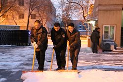 天逐漸放晴,太陽初升,這第一場(chǎng)雪的緊張24小時(shí)終于過去,但是并沒有結(jié)束,下午,又有數(shù)百名公交職工走上街頭,清理馬路上的積雪。