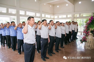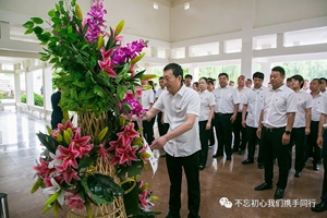當(dāng)天早上7:40參加此次活動的同志驅(qū)車一個多小時來到樂亭縣,懷著崇敬之情走進(jìn)李大釗紀(jì)念館。“革命先驅(qū)李大釗英魂永存”,全體黨員首先向李大釗塑像敬獻(xiàn)花籃,黨委書記夏保良上前捋平花籃上的緞帶,并帶領(lǐng)全體黨員行鞠躬禮。在黨委工作部部長周群的帶領(lǐng)下,全體黨員莊嚴(yán)宣誓,在錚錚誓言中堅定理想信念、牢記初心使命。